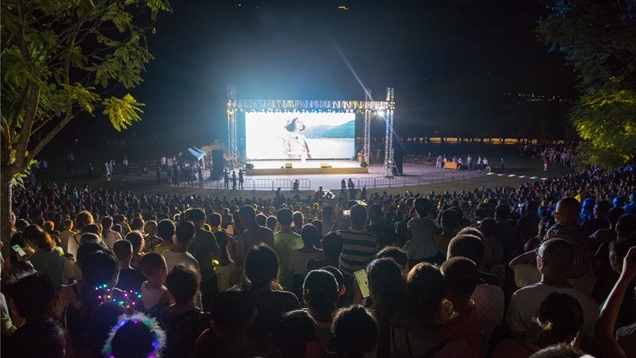 在月光剧场露天影院,播放着经典爱国电影《我和我的祖国》《攀登者》等,天刚擦黑,现场就已经座无虚席。大家认真观看,如临其境,时而深深地被影片吸引,时而互相讨论着故事情节,感叹影片中角色的不易和坚持,其角色勇往直前、奋不顾身、顽强不屈的精神让现场观众深深震撼,其展现出来的爱国情怀、民族精神深深感染着在场的每一位观众。