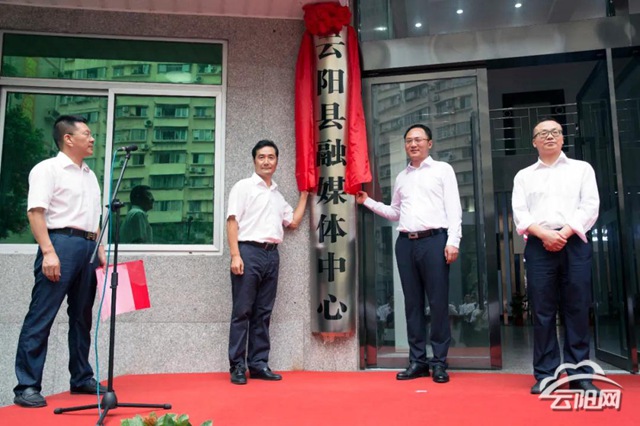 县委常委、宣传部部长王启海和县融媒体中心主任胡乾毅为云阳县融媒体中心揭牌。