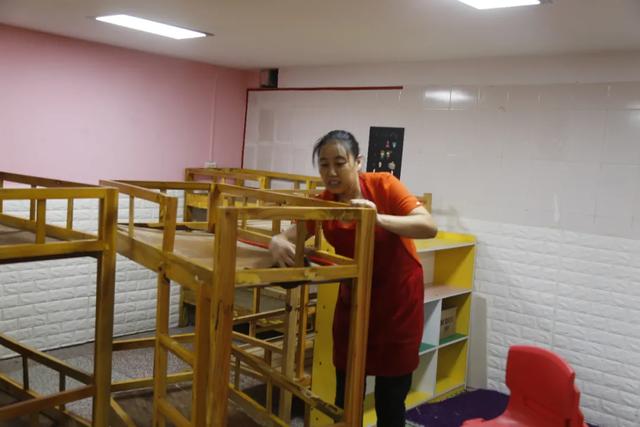 工人们正忙着打扫、清洗,进行全方位的消毒