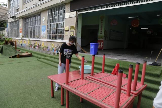 对各类生活、工作场所开窗通风同时,该园正储备洗手液、消毒剂
