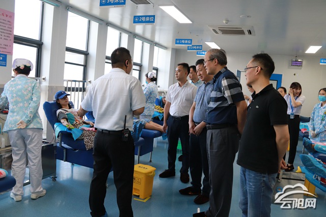 在云阳血浆站,陈钢建一行详细了解了血浆采集的全流程,查看了血浆站采浆区域、献浆员登记流程,采浆机配置及使用等情况,询问献浆员献浆感受,并对他们的爱心奉献表示衷心感谢。