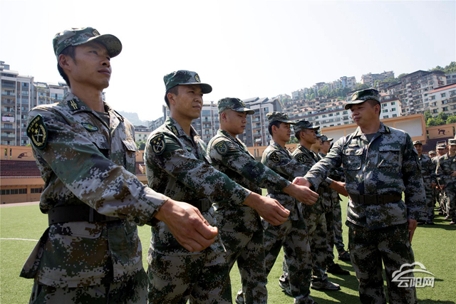 据了解,全县所有教官都要开展集中训练,不但训练教官能做、能教,还要善于表达,经考核、考试、选拔,合格后,颁发学生教官资格认证书,被陆续分配到全县各中学,对学生进行国防教育和军事科目等方面的训练。(刘兴敏 摄)