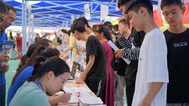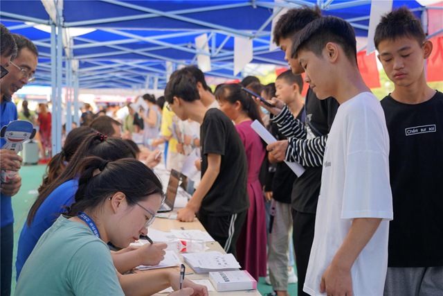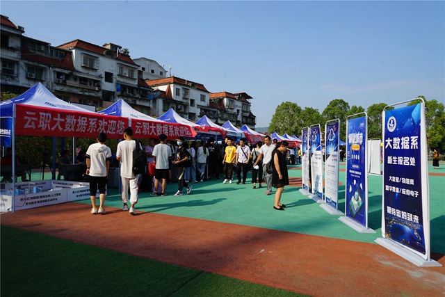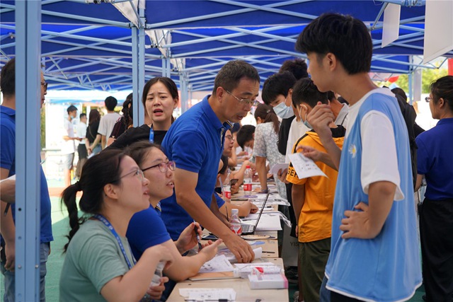 早上8点30左右,在县职教中心校园内处处可以拎着行李、带着父母前来报名的心声。在学校的工业机器人和大数据专业咨询报名处,家长学生更是将报名台围得水泄不通。