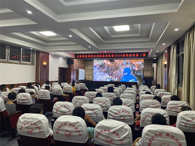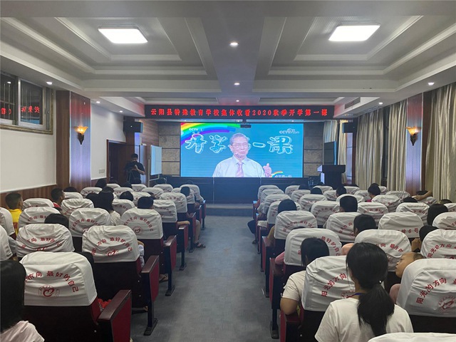 云阳网讯(记者 洪琳 鲜名扬)9月1日晚上8点,在云阳县特殊教育学校多媒体教室里,100余名残障儿童齐聚一堂,共同观看由中宣部、教育部、国家卫生健康委和中央广播电视总台联合制作的大型公益电视节目《开学第一课》。