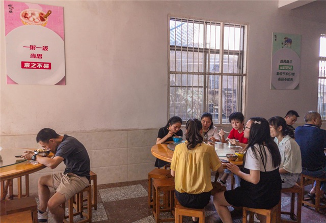 普安乡政府机关和乡属单位各食堂,在醒目位置都张贴着“一粥一饭当思来之不易,勤俭节约习惯永远不能丢”等宣传标语。职工们有序排队,按需取餐,禁止交头接耳和大声喧哗。
