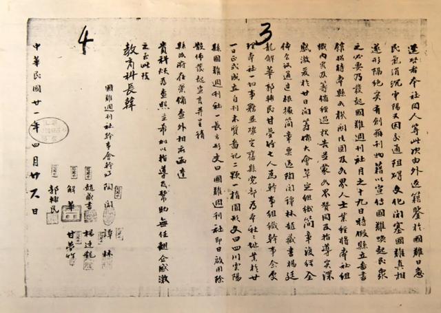 1932年4月26日,陶訚、谭林等人向县教育科呈报申请出版《国难周刊》