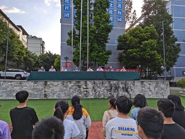 云阳网讯(通讯员 张小林)五分钟能做什么,五分钟能讲些什么?9月3日上午,云阳职教中心对2020级新生进行入学教育,上好“开学第一课”。操场上,1200余名学生正襟危坐,洗耳恭听,教务处、学生处、生习处、体艺处等7名处室负责人分别用五分钟时间对学生进行学习适应性和生活适应性、校规校纪、专业思想、安全稳定、疫情防控、身心健康教育。