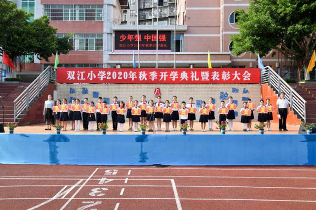 云阳网讯(记者 付骜 通讯员 葛淑君)9月3日上午8时,迎着灿烂的晨光,怀抱新的希冀,云阳县双江小学全体师生怀着喜悦的心情迎来了以“少年强 中国强”为主题的秋季开学典礼。