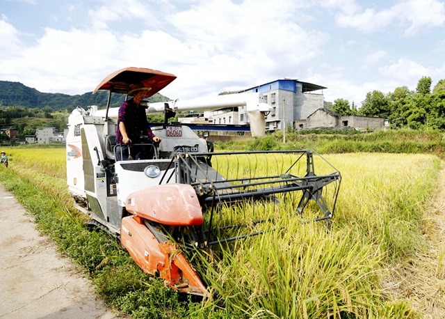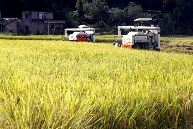 据悉,路阳镇是农业部万亩高产创建示范基地,也是机械化育秧插秧示范镇,为保证收割工作圆满完成,让粮食及时入仓,该镇成立了水稻机收专项服务队,在水稻面积较大的村(社)设立了机收服务站,专门组建了水稻收割机维修服务流动车。当下共有18台大型联合收割机在路阳镇收割水稻,2万亩水稻预计在9月中旬可全部完成。