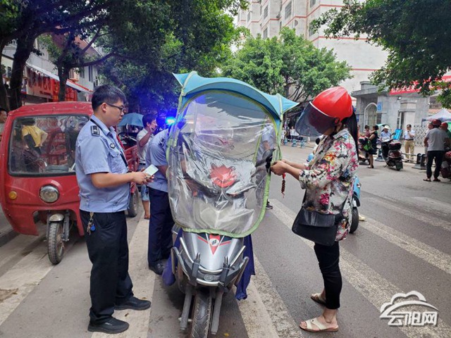行动中,联合小组分为两个组,在场镇车流量最大的两个路段,设立流动检查点,没戴头盔的、超载的现场整改,非法拼改装的现场拆除,对查处的交通违法行为一律按照法律法规严格处罚。同时,为方便车主,综合执法大队还邀请保险公司工作人员随同检查,现场演示车辆如何参保。
