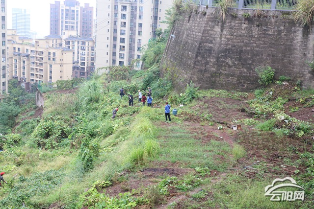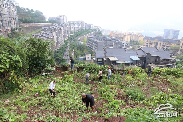 云阳网讯(记者 王月园 实习生 李歆宇)9月15日,双江街道、县城管局组织工作人员来到寨坝加油站旁的闲置地,开展铲菜复绿行动,清理地块内居民擅自耕种的农作物。