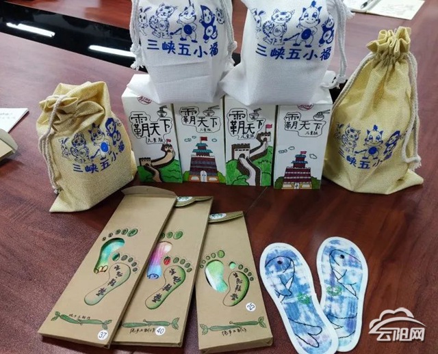 据介绍,文创旅游产品“三峡五小福伴手礼”是该校电子商务专业学生曾怡嘉、贺倩云、舒琴设计制作的。通过梳理本地民间文化、历史文化,借助在平面设计课上学到的知识,创作出“三峡五小福”形象,并做成书签、便利贴、布袋、商品包装盒。同时,整合三峡地区的农特产品桃片糕、菊花、红薯干,设计制作出了一个具有浓郁三峡文化特色的文创旅游产品——伴手礼。