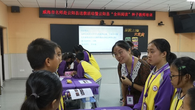 当天上午,初朝霞、陈海燕等9位威海名师分别展示了9堂高水平的示范课。秦嫣雪、杨武等9位云阳本土青年教师分别上了展示课。威海名师注重创设贴近学生生活的学习情境,聚焦“主任务”“项目学习”“主题研讨”等关键词,将培养学生“必备知识”“关键能力”新课标理念巧妙融入教学活动中,以高超的教学技术点燃课堂氛围,以灵动的教学方式激活学生思维,以深厚的全科学养撬动学生激情,以丰富的教学资源拓展课堂深度,把“能阅读、会阅读”的种子根植于学生的心田。