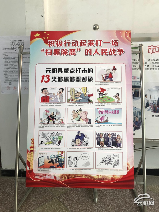同时,全县医疗机构,利用RED显示屏、宣传栏和宣传展板,向干部职工、患者及家属宣传扫黑除恶专项斗争相关工作和政策。