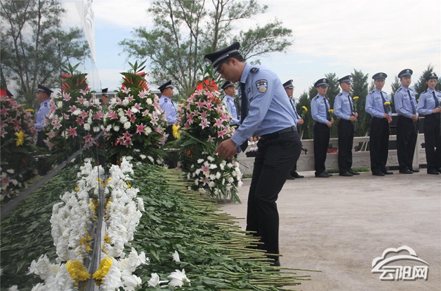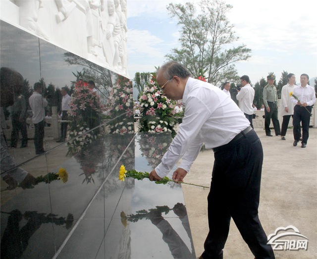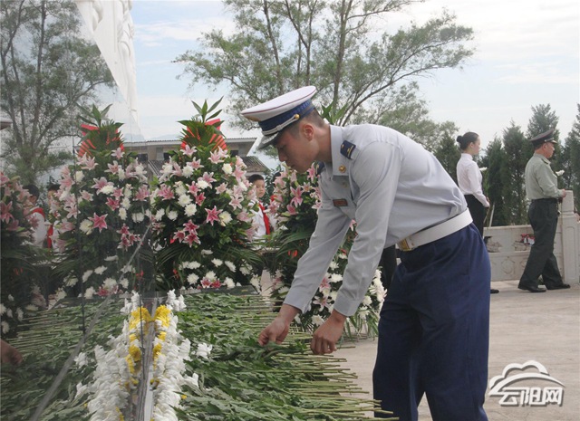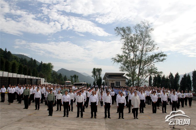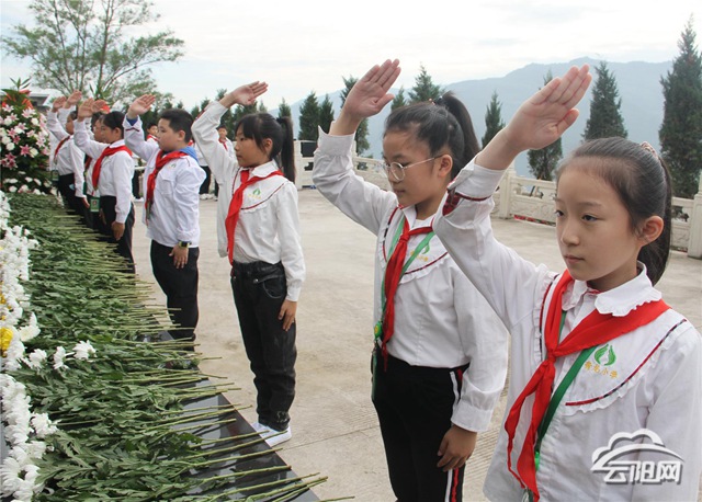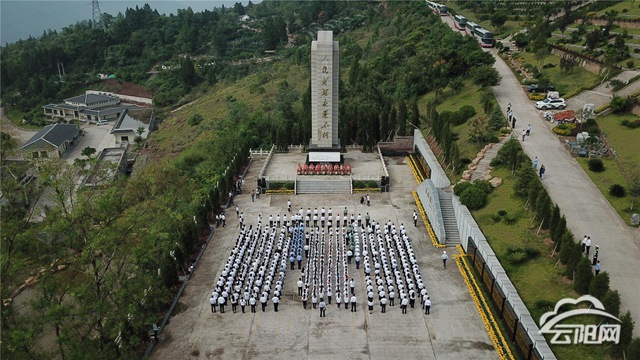 烈士陵园内,松柏长青,气氛肃穆。革命烈士纪念碑巍然耸立,正中央“人民英雄永垂不朽”八个大字,熠熠生辉。纪念碑前,600多名社会各界代表手持鲜花,列队肃立。队列之前,以中共云阳县委、县人大常委会、县人民政府、县政协,驻云各部队,各民主党派、工商联和无党派人士,各人民团体和各界群众,军烈属和老战士,全县少先队员名义敬献的9个大型花篮一字排开,寄托着社会各界对英烈的深切缅怀。