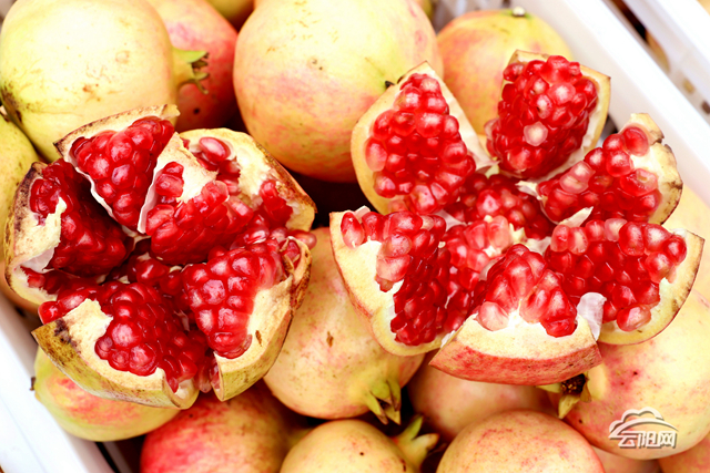 石榴蕴含多种维生素,含有花青素和红石榴多酚两大抗氧化成分,是纯天然的护肤品、营养品。同时,石榴在中国象征好事长“榴”,也寓意着,人们的日子会像枝头上的“红灯笼”,红红火火,甜甜蜜蜜。金秋时节,喜迎双节,不妨带上家人,观赏石榴园美景,体验采摘石榴乐趣,感受乡村原生态农家生活。