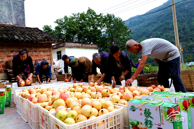 云阳网讯(记者 朱学徽 实习生 李歆宇)9月28日,双土镇双土社区产业园里,一个个硕大鲜红的石榴挂满枝头,连空气中都弥漫着丝丝清香,正忙着采摘的村民笑逐颜开,丰收的喜悦洋溢在每个人脸上。