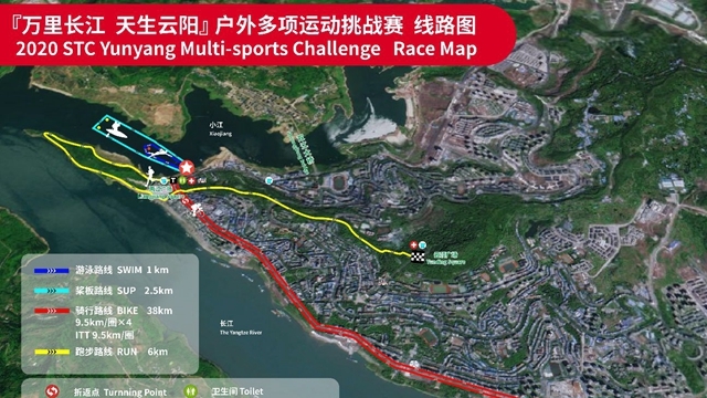 据介绍,比赛将从两江交汇处的两江广场出发。水上项目都在澎溪河水域进行,云阳“一江碧水半山秋”的诗意将会让水上竞技平添一份自在。而自行车和跑步项目则会沿着江边道延展,让选手有机会沿江遍览美景,感受一山一石背后云阳承载着的厚重人文底蕴。比赛最后的跑步项目中,选手将踏上“登云梯”,绕行江岸后沿着阶梯直上,登顶终点的“云顶广场”。