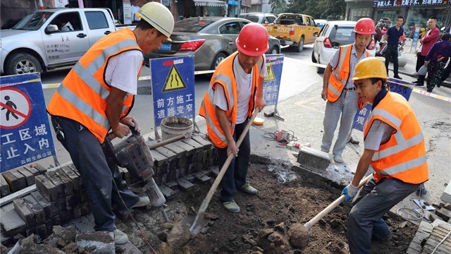 近日,施工人员正在对群益路一处人行道进行缘石坡道改建,对原本与地面有10厘米高度差的人行道口进行拆建,改造成平缓的坡面,方便乘轮椅者进入人行道行驶。