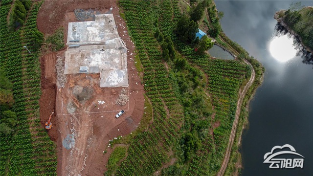 10月10日,在凤鸣镇太地村祥飞农业发展有限公司桑园里,成片的桑树绿意盎然,绿得滴翠的桑叶迎风摇曳。祥飞农业发展有限公司智能蚕房建设施工现场,挖掘机正在进行挖土作业,工人们忙着运载钢材。