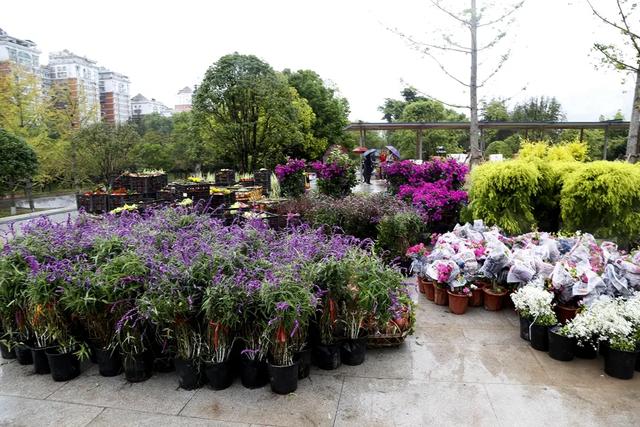 今天,小编来到“花博会”的布置现场,该园位于环湖绿道滨江公园清风广场,工人们正按照设计方案摆放各类花卉,部分景观设计图案已完成。