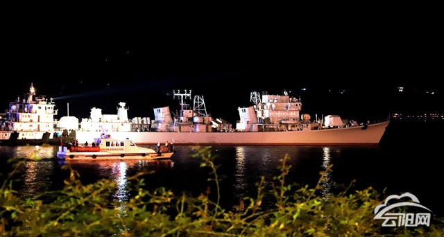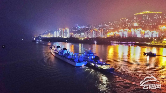 云阳网讯(记者 付骜 徐磊磊 朱贞霓 王月园 洪琳 邓磊)10月18日晚21时,“珠海舰”过境云阳县,全县市民在长江之滨一睹“国之重器”的风采。
