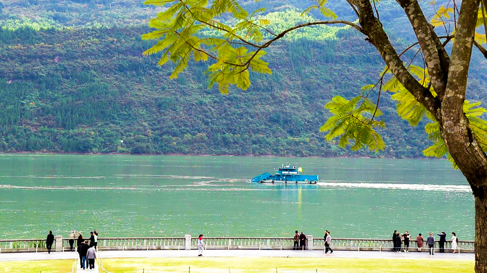 来到长江之滨,从空中俯瞰,江与城、山与水相映增辉,美不胜收。在月光草坪亲水步道,市民三五成群,信步游湖。伴着荡漾的碧波,一艘艘轮船缓缓驶过,仿佛船在江中行,人在画中游; 在怪石林立的“宇宙星座”节点,人们坐在大石上看江看船,或是拍张留影,各得其乐。 “第一次来云阳看到蓄水,山美、 水美,风景特别好,视野很开阔。感觉特别棒,我还会再来。”外地游客石女士赞叹道。