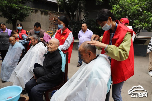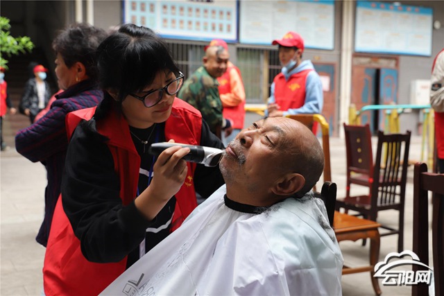 活动中,志愿者们为养老院全体老人献上了唱歌、舞蹈、朗诵等丰富多彩的文艺节目,老人们一边晒着暖阳,一边欣赏表演,一个个乐得合不拢嘴,脸上洋溢着幸福的笑容。随后,志愿者们兵分两路,一些志愿者走进老人房间,帮他们整理床铺,打扫卫生,与卧床的老人谈心,听他们讲述了属于他们年代的故事,老人脸上都挂着浅浅的微笑。另一些志愿者则为老人洗头,协助理发师帮老人理发、剃胡子、捶肩捏腿等。大家手艺娴熟,耐心倾听老人对发型的要求,老人修剪头发后都精神抖擞,笑容满面,周到贴心的服务赢得了老人们的一致好评。“今天敬老院十分热闹,志愿者为我们表演节目、理发,还走进房间做清洁,大家伙都非常开心,这些服务都是给老人们满满的爱。”施敬全老人说道。