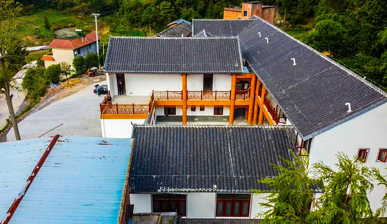 据了解,这座占地面积达1040平方米的特色四合院地处凤鸣镇马轩村,为多集合生态农业观光园农民培训中心项目,于8月建成。该院落前观水库,背倚青山,建筑风貌呈现传统民居特色,尽显古朴幽静。而它的前身则是当地闲置民居“田家老屋”,为8家农户所有。四合院的改建通过龙头企业带动农民专业合作农民自主参与,形成了新型发展模式,建成集休闲体验、生活、服务功能为一体的现代农业庄园。
