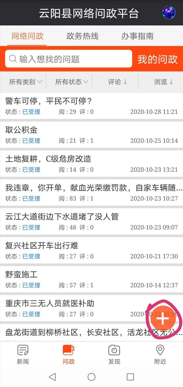 都可以通过《智慧云阳》客户端网络问政进行