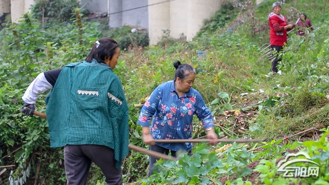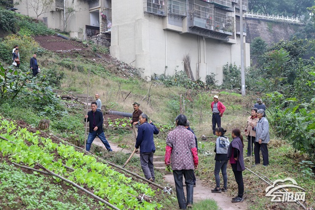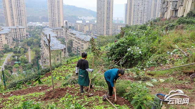 云阳网讯(实习生 谭启云)10月30日,在青龙街道杨沙社区金科西南侧一线安置房坡地,十几名工人正忙着对坡地里的青菜、红薯等农作物进行铲除,再挖坑把土壤松散后将树苗种植下去,一棵棵树苗搬进了“新家”。