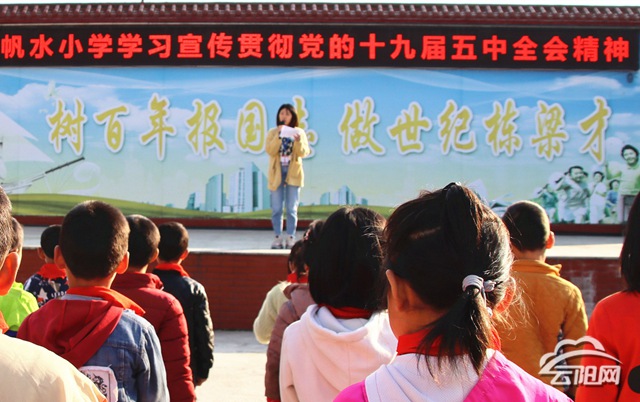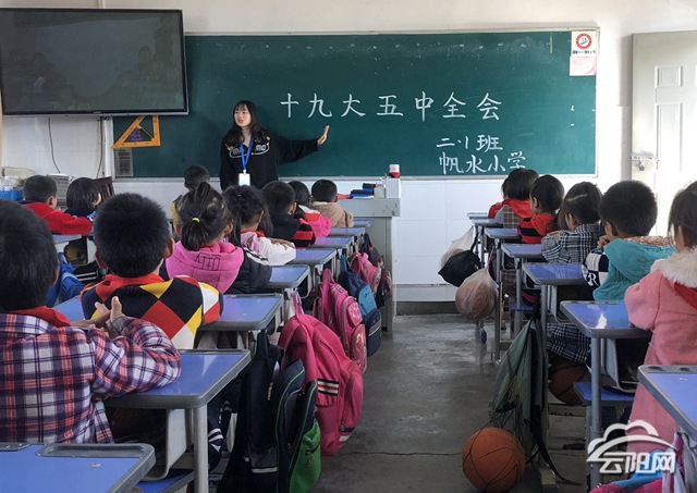 云阳网讯(通讯员 陈云云)11月16日,帆水小学组织全体教职工集体学习十九届五中全会精神,另通过“班会主题活动”“升旗仪式主题活动”多种形式向学生宣讲了十九届五中全会精神。