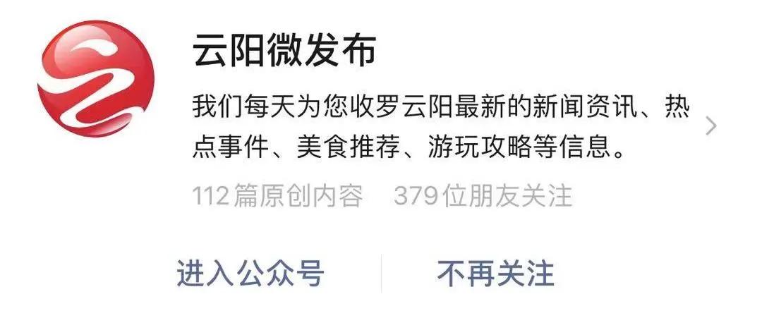 “云阳微发布”微信公众号,创办于2015年,每日推送图文消息,影响力长期名列全市前三,也是我县最具影响力的微信公众号。