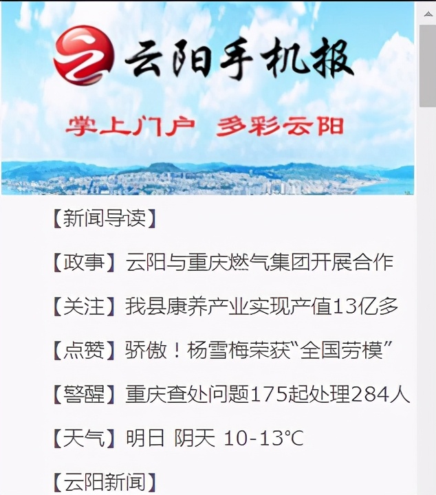 云阳手机报,创办于2008年8月,采用彩信的方式覆盖移动、联通、电信三家运营商19万手机用户。