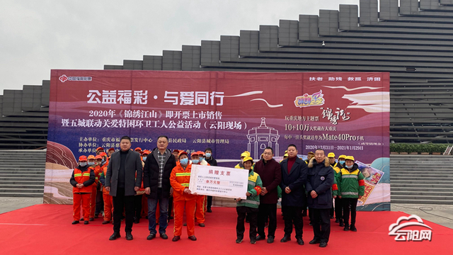 云阳网讯(记者 张诗怡 瞿利文)2020年12月31日,我县举行2020年《锦绣江山》即开票上市销售暨五城联动关爱特困环卫工人公益活动。