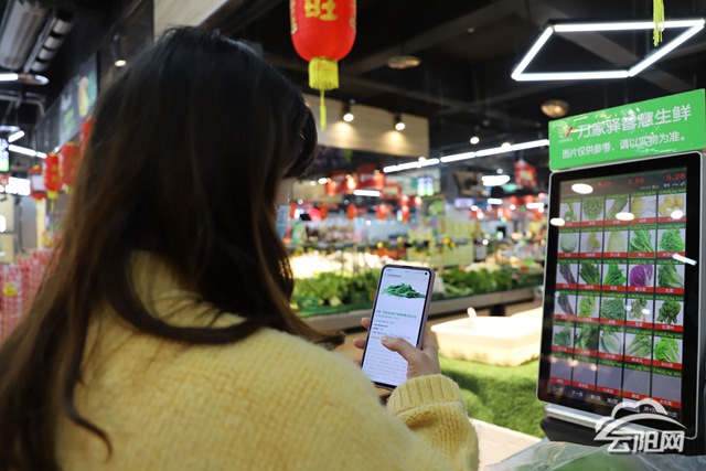 与传统超市相比,这家智慧生鲜超市不仅将自主体验区、粮油干货区、蔬菜水果区、扶贫专柜区等功能区域划分细致,且每个摊位前都悬挂着一块智能显示屏,循环播放商户的营业执照等经营信息。此外,万家驿智慧生鲜超市还在卖场的核心区域规划了扶贫专区,销售云阳本地的特色农产品,为市民选购正宗的农特产品提供了新选择。