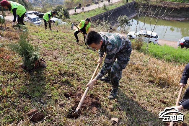 现场,大家三两合作,将一棵棵小树苗放入挖好的坑内,再培土、浇水。经过一番热火朝天的奋战,一棵棵新栽的苗木挺拔在山坡上,沐浴着春光。“植树不仅能让我们强身健体,也让我们的家园更加绿意盎然,希望以后能多开展这样的活动。”凤鸣镇工作人员周义博说。