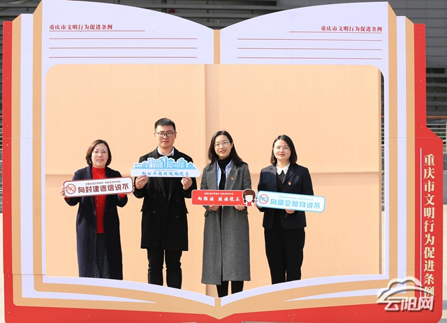 云阳网讯(通讯员 余飞)近日,初三中近30名党员代表和学生代表,齐聚两江广场,主动参加云阳县“3·5”学雷锋纪念日暨《重庆市文明行为促进条例》宣传志愿服务活动。