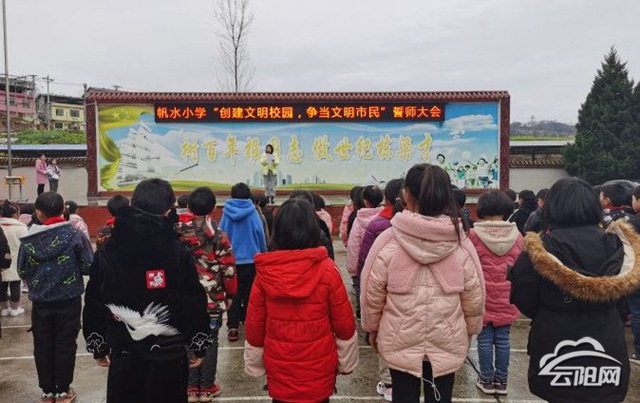 云阳网讯(通讯员 陈云云)3月9日,帆水小学开展了“创建全国文明城市,争做文明学生”誓师大会。