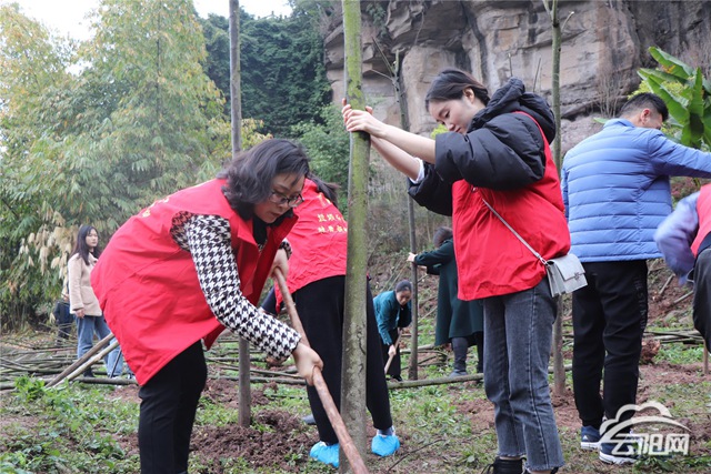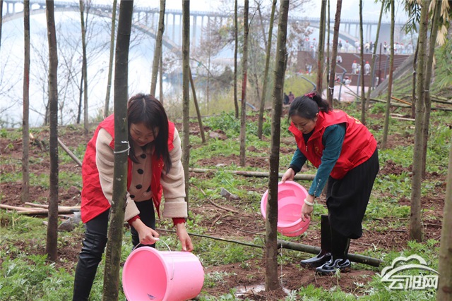 在木鱼包公园,县城市管理局机关干部职工以及党员先锋队、城市提升志愿服队队员齐上阵,你扶苗,我培土,干得热火朝天。通过大家的齐心协力,一棵棵栾树在澎溪河畔安了新家,杂草丛生的闲置地重焕生机。