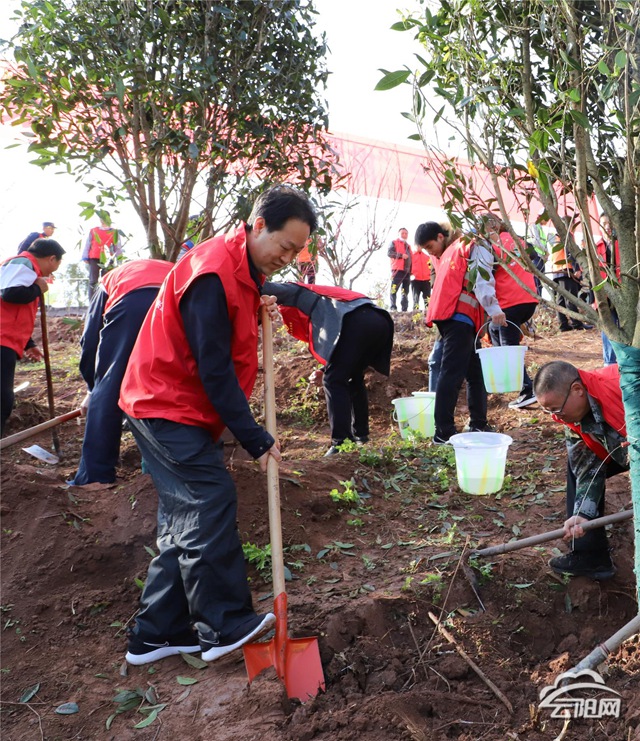 春风和煦,草木萌绿,云阳大地充满勃勃生机。数智森林小镇各个植树点,植树的人们干劲十足,挖坑、扶树、培土、浇水,现场一派忙碌景象。张学锋、覃昌德等一下车就加入植树队伍中,与干部群众、志愿者一道,齐心协力栽种下片片新绿。