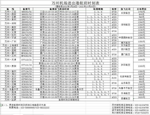 “换季后,万州机场始发的大部分航班机票价格将下调票价,五一前出行折扣更多。”万州机场有关负责人介绍,多条航线将推出特价机票,详情可咨询023-58888888、58222222。