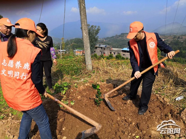 此次活动结合养鹿镇柑橘产业,以栽植柑橘树苗为主。在新禾村植树点,镇村干部兴致勃勃地投入到植树活动中,有的挖坑,有的扶苗,有点浇水,充分展现了团队协作的力量。