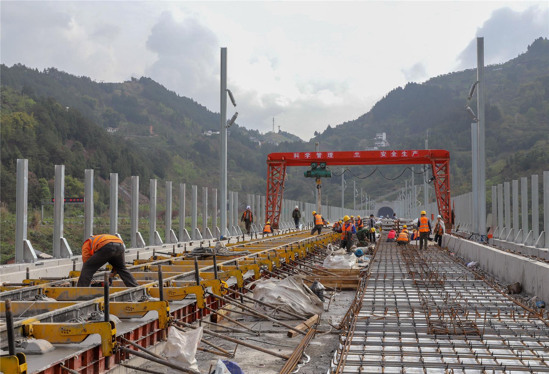 在郑万高铁云阳段二分部的施工现场,记者了解到该分部所承担的工程建设推进顺利。其中,永利隧道已完成道床板施工,谭家河双线特大桥已完成底座板施工,小周隧道正安装扣件,巴阳隧道道床板施工、扣件安装进度过半。