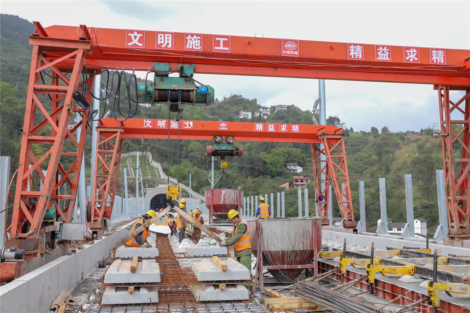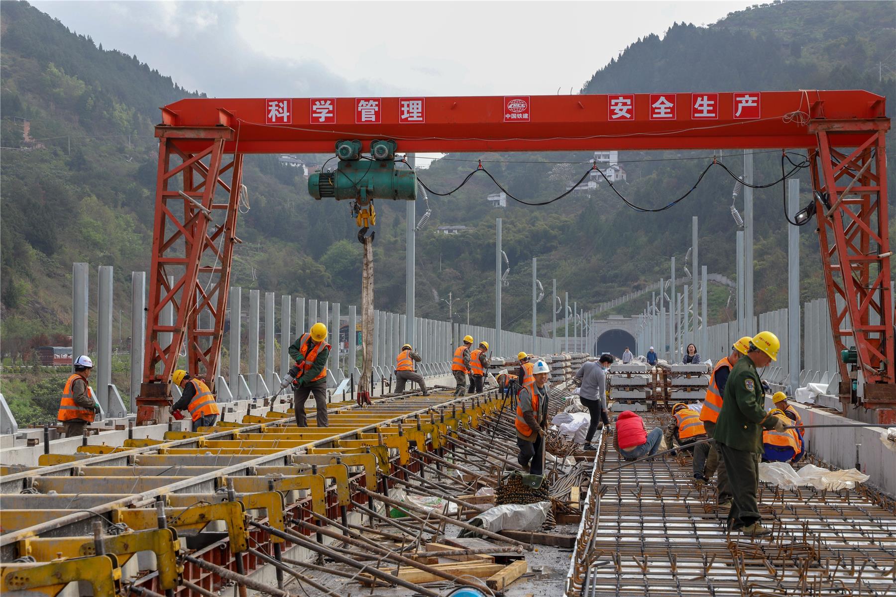 3月22日,郑万高铁云阳段巴阳双线特大桥和澎溪河多线特大桥等地,工人师傅正在紧张有序进行混凝土浇筑、钢筋绑扎、轨枕安装等铺轨前期准备工作,施工现场呈现出一片热火朝天、大干快上的忙碌景象。