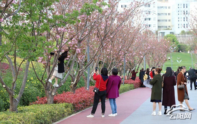 春光明媚,月光草坪樱花盛开,或雪白,或粉红,宛如云霞,美不胜收。靓丽的景色吸引了众多市民前往赏花打卡,但在赏花过程中,时有爬树照相、采摘花朵等不文明现象发生,让樱花很受伤。公园管理所工作人员呼吁市民文明赏花,不要伤害花草树木。