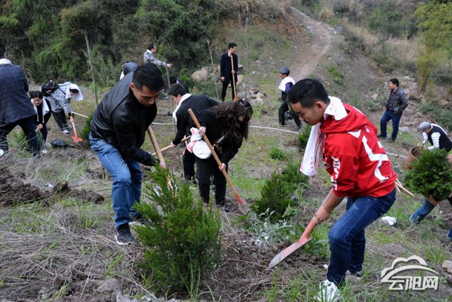 山间里,大家投入到植树活动中,运送树苗、拉线挖坑、合作种植……分工协助,热火朝天。经过一天的努力,完成2000余平方米种植面积,共植塔栢、栾树等500余棵,原本的荒坡上一排排层次分明的树苗迎风挺立,披上新装。