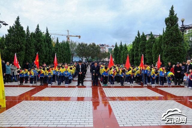 4月2日上午,学校全体党员同志、300名少先队员,在民德广场进行扫墓活动,缅怀革命先烈。