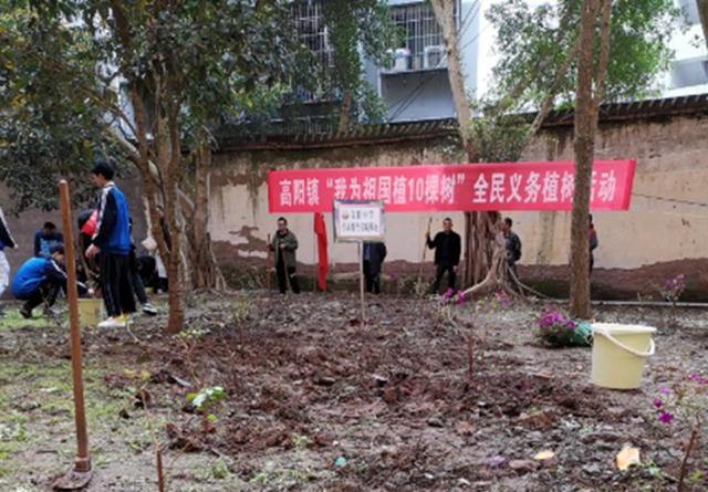 云阳网讯 近日,高阳镇组织干部职工和高阳中学教师共50余人在高阳中学参加植树活动。