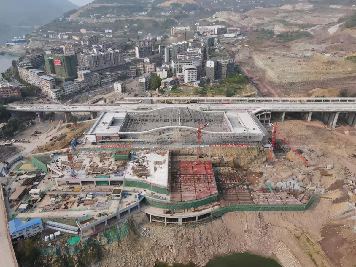 正在建设的郑万高铁云阳站站房。云阳县交通局供图